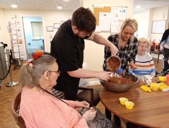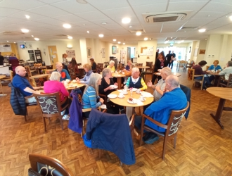 It wouldn't be Easter at the Cuttings without a visit from the Quizmaster, Andrew Bull. Tenants and staff can get involved in the quiz and Andrew always brings along some generous prizes! This year there was a Sit-Com music round which brought memories to many tenants (and staff!)