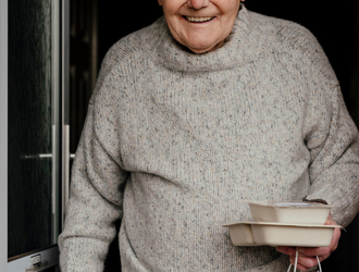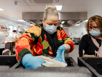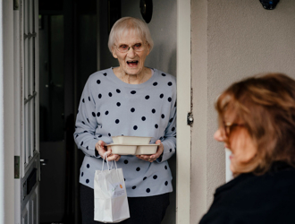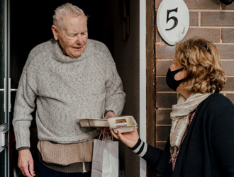 The food was package and stored in tremendous time, perfectly aligning with the volunteers arriving to collect their elected delivery box. The team was out in full force, with 15 different rounds being delivered altogether. Each chef had the privilege of joining some of our team and volunteers, including a special trip made by our Chief Executive, Sue Cawthray, who escorted Stephanie Moon to visit an ex-volunteer, Reg, who now receives the meals himself.